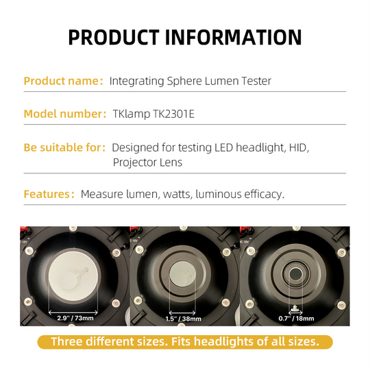 The TK2301E Automotive Lighting Tester is the industry's first compact integrating sphere tester engineered specifically for comprehensive automotive lamp testing. Universal Automotive Compatibility: Optimized for all lighting technologies including LED, HID, halogen, and projector lens systems....Regular price $419.00 -