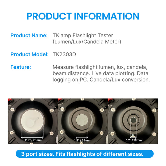 TK2303D Flashlight Tester is the latest and improved version of the popular TK2303 model. The one device for all your flashlight testing needs. It features live plotting capabilities, an increased measurement range, beam distance calculation, and...Regular price From $469.00